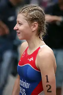 ![]() Yevgeniya Sukhoruchenkova at the Triathlon Premium European Cup in Alanya, 2009. | |