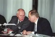 Yevgeny Adamov with President of Russia Vladimir Putin in Chelyabinsk Oblast on 31 March 2000.