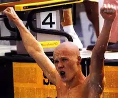 Yevgeny Viktorovich Sadovyi (Russian: Евгений Викторович Садовый; born 19 January 1973) is a retired Russian freestyle swimmer who won three gold medals at the 1992 Summer Olympics at Barcelona and was subsequently chosen by Swimming World magazine as the Male World Swimmer of the Year.