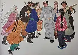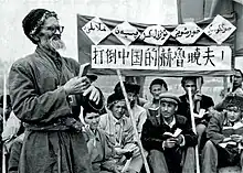 Despite official narratives, the takeover of Xinjiang by the Chinese communists in 1949 did not repair the relationship between the Chinese central government and the Turkic peoples of Xinjiang, which was marred by distrust. The Chinese government sought to stamp out "separatist tendencies" and "local nationalism" among the populace in the areas formerly governed by the ETR.[20] Chinese authorities were fearful that a separatist movement in Xinjiang could serve as a tool of Soviet subversion amid worsening Sino–Soviet relations.[21] From August 1957 to March 1960, an "Anti-Rightist Campaign" was waged in Xinjiang. Hundreds of non-Han Chinese officials were removed from their positions in the local government, denounced, and imprisoned. The Chinese government then replaced them with Han Chinese officials and recruited 800,000 Han Chinese youth from the country's east to aid the new leaders in "socialist construction".[22] The rapid disappearance of ethnic minorities in the local governments of Xinjiang intensified anti-Chinese and pro-Soviet sentiments among the non-Han Chinese populace.[23]