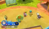 During battles, Yo-kai have 6 different actions they can perform: attack (which only be performed when close to an enemy), inspirit (which will affect another Yo-kai, which can be positive or negative depending on if the inspirited is a teammate or not), end turn (which will end the Yo-kai's turn), item (which will allow the player to use an item on the playing Yo-kai), and an elemental attack option (which will make the playing Yo-kai use an elemental attack on enemies). Each Yo-kai also has a unique "Soultimate", a more powerful move that, depending on the user, can either be offensive or give positive effects to teammates.[2] Unlike other moves, the Soultimate can only be performed once a Yo-kai's "soul gage" is full, which is increased when a Yo-kai attacks an enemy.[2] All performable actions can vary on the Yo-kai, with each Yo-kai having a unique set of attacks. When two enemies of the same team have a Yo-kai of the other team in between them, a more powerful attack can be performed on the middle Yo-kai.[2] When a Yo-kai attacks an enemy, a "warlord attachment battle" minigame may occur in which the player must press the A button at the same time they collide with their enemy.[2] Enemies, who are controlled by the AI, have the same general actions as playable characters.
