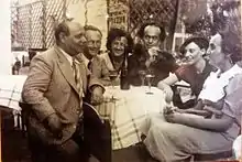 Moshe Lifshits, Israel Zmora, the hostess Luba Goldberg, Avraham Shlonsky, Lea Goldberg, Yocheved Bat-Miriam (1938)
