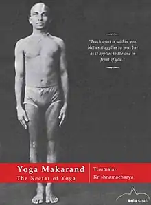 Yoga Makaranda (Sanskrit: योग मकरन्द), meaning "Essence of Yoga", is a 1934 book on hatha yoga by the influential pioneer of yoga as exercise, Tirumalai Krishnamacharya. Most of the text is a description of 42 asanas accompanied by 95 photographs of Krishnamacharya and his students executing the poses. There is a brief account of practices other than asanas, which form just one of the eight limbs of classical yoga, that Krishnamacharya "did not instruct his students to practice".[1]