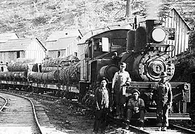 The Yosemite Lumber Company constructed its own logging railroad to reach their timber holdings. They started with a small two-truck Shay locomotive in 1912. A second, larger three-truck Shay was added the following year. The company used Yosemite Valley Railroad standard gauge bulk-head flat cars to haul timber. This meant that the same cars could move from the woods to the mill, loading only once.