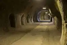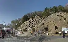 The Yoshimi Hundred Caves (吉見百穴, Yoshimi Hyakketsu) is a cluster of corridor-type kofun (横穴式石室, yokoana-shiki sekishitsu) tombs dug in artificial caves in a tuff cliff of located in the town of Yoshimi, Saitama, in the Kantō region of Japan. It was designated as a National Historic Site on March 7, 1923. [1] The Schistostega luminous moss growing at the site was also designated as a Natural Monument of Japan on November 30, 1928.[2] The site is part of Hiki Hills Prefectural Natural Park.
