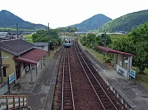 Yoshinobu Station (吉野生駅, Yoshinobu-eki) is a passenger railway station located in the town of Matsuno, Kitauwa District, Ehime Prefecture, Japan. It is operated by JR Shikoku and has the station number "G37".[1][2]