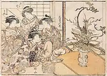 Yoshiwara was home to some 1,750 women in the 18th century, with records of some 3,000 women from all over Japan at one time. Many were typically indentured to their brothel; if indentured by their parents, a larger advance payment would often be received. Though contracts of indenture often did not last more than five to ten years, the debt sometimes accrued by these women could keep them working there for much longer. However, a significant number either served out their contracts and married a client, went into other employment (including other forms of prostitution), or returned to their family homes. In these cases, the advanced payments a woman's parents received could be used to fund her dowry.[4] Despite this, many women also died of sexually transmitted diseases, or following failed abortions, before completing their contracts.[5]