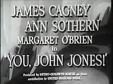 You, John Jones! (1943) is a short film directed by Mervyn LeRoy, written by Carey Wilson, and released by Metro-Goldwyn-Mayer, and starring James Cagney, Ann Sothern, and Margaret O'Brien. The film credits the War Activities Committee of the Motion Picture Industry for its production. The title frame also says "Produced by Metro-Goldwyn-Mayer as their contribution to United Nations Week".