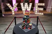 Illuminated letters and celebratory cake at the 2018 awards ceremony.