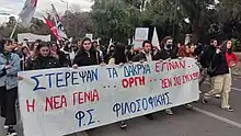 Students in a demonstration for the Tempi rail crash in Greece, 2023.