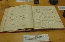A laboratory diary of Yrjö Väisälä. The text is written in 1929. On the pages seen here Väisälä describes the principle of 'a new telescope for photography'. Väisälä never published this concept and few years later Estonian Bernhard Schmidt invented the same construction which is now known as the Schmidt camera.