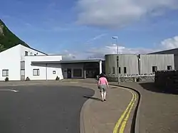The facility was commissioned to replace the aging Ysbyty Bron y Garth in Penrhyndeudraeth.[1] It was designed by IBI Group and built on an elevated site which had previously been occupied by a rail interchange and ironstone mine.[2] It cost £19 million to construct and was officially opened by Edwina Hart, Minister for Health and Social Services, in July 2009.[3][4]
