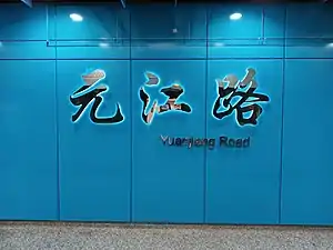 Yuanjiang Road (Chinese: 元江路; pinyin: Yuánjiāng Lù) is a metro station on Line 15 of the Shanghai Metro. Located at the intersection of Yuanjiang Road and South Lianhua Road in Minhang District, Shanghai, the station is scheduled to open with the rest of Line 15 in 2020.[1][2] However, the station eventually opened on 23 January 2021 following a one-month postponement.[3]