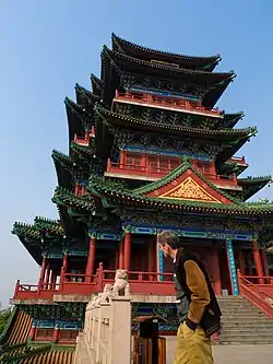 Yuejiang Tower (simplified Chinese: 阅江楼; traditional Chinese: 閱江樓; pinyin: Yuèjiāng Lóu; lit. 'view river tower'[1]) is situated on the top of Shizishan (Lion Mountain) to the northwest of downtown Nanjing, Jiangsu. The river referred to its name is the Yangtze River, which may be viewed to the north, while central Nanjing can be viewed to the south.