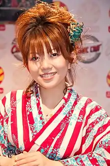 Yui Makino (牧野 由依, Makino Yui, born 19 January 1986) is a Japanese actress, voice actress, singer, and pianist.[1] She is best known for her work in the anime Tsubasa: Reservoir Chronicle where she voices Sakura and some of the theme songs for the Aria anime series. She is associated with Amuse, Inc. One of her earliest voice acting performances was the character "Sister" in a short-anime movie Bavel no Hon when she was 10.[1] She married singer Yutaro Miura in 2020.[2][3]