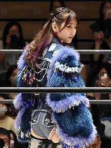 She is known for working into various of the promotion's signature events. One of them is DDT Peter Pan, making her first appearance at Ryōgoku Peter Pan 2018 from October 21 where she teamed up with Mina Shirakawa and Miyu Yamashita in a losing effort against Yuka Sakazaki, Mizuki and Shoko Nakajima as a result of a six-woman tag team match.[10] One year later at Wrestle Peter Pan 2019 on July 15, she participated in a Rumble rules match for the Ironman Heavymetalweight Championship won by Yukio Sakaguchi and also involving Hiroshi Yamato, Shiro Koshinaka, Joey Ryan, Gorgeous Matsuno and others.[11]