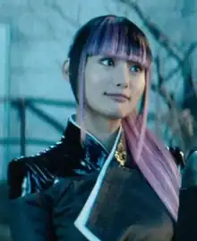 - Yukio appears in Deadpool 2, portrayed by Shioli Kutsuna.[21][22] This version is a member of the X-Men and the girlfriend of teammate Negasonic Teenage Warhead with technical prowess and electrokinesis. Due to the latter power, fans suggested that the screenwriters had given Yukio's name to a different character, Surge, but the screenwriters denied this, insisting that Yukio remained the same character.[23]