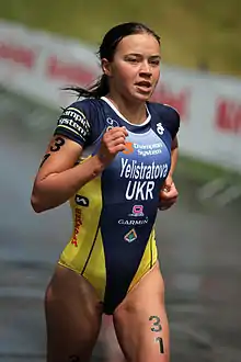 Yuliya Oleksandrivna Yelistratova (Ukrainian: Юлія Олександрівна Єлістратова; born 15 February 1988 in Ovruch, Zhytomyr Oblast, Ukrainian SSR, Soviet Union,[1] Russian: Юлия Елистратова) is a Ukrainian professional triathlete, European U23 champion of the year 2009, Number 1 in the ITU ranking (women's standing) of the year 2009 with by far the highest “total number of races” (6), several times national champion in various categories and member of the Ukrainian national team. She competed at the 2008, 2012 and 2016 Summer Olympics.[2][3]