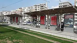 Yunuslar is a light-rail station on the Karşıyaka Tram line of the Tram İzmir network. The station consists of an island platform serving two tracks. Yunuslar is located within the Karşıyaka Waterfront Park (Turkish: Karşıyaka Sahil Parkı), on the south side of Cemal Gürsel Boulevard, near the Yunuslar Monument from which the station gets its name. Yunuslar station was opened on 11 April 2017, along with the entire tram line.[1]