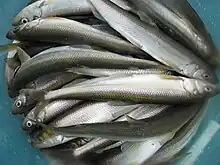 Salmon as food, herring as food, smelt, halibut, flounder, tomcod, pike, and capelin were gutted and air dried or smoked.[4] The fish heads they made into qamiqurrluk (cut and dried fish heads), and some they made into tepa (aged fish heads).[6] Fish eggs (roe) were dried and stored.[4]