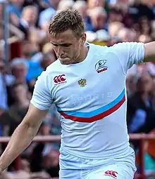 Yuri Viktorovich Kushnarev[lower-alpha 1] (born 6 June 1985) is a former Russian rugby union player. He played as a fullback and/or as a fly-half. Kushnarev is the most capped Russian player as well as the top scorer for Russia. Having played one hundred and twenty times for his country, Kushnarev holds the 24th most caps in international rugby.