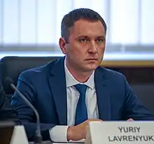 Yurii Lavreniuk (born April 25, 1980) is a Ukrainian civil servant, PhD (Philosophy Doctor) in public administration; Deputy Minister of Infrastructure of Ukraine (2016-2019), member of the National Council on Anti-Corruption Policy (2019-2020), veteran of the war in Donbas (2014-2015).[1][2]