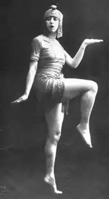 Daunt was premiere danseuse caractere with the Paris Opéra. She joined the Opéra in 1918, and was featured in Ascanio (1921), Les Troyens (1921),[5] Padmâvatî (1923), Castor et Pollux and Antar, in the last as a barefoot "Spirit of Fire". She replaced Ida Rubenstein in the title role of La Tragédie de Salomé in 1922, and danced in the ballet Frivolant in that same year.[6] "She is a true artist," remarked one reviewer in 1919; "she displays much inspiration and a strong personality, as well as impecable [sic] technique."[7] Her minimal costumes were considered "startling" in their day.[8] In 1923 she presented a series of dances to the music and accompaniment of American composer Henry Cowell.[9]
