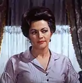She prepared extensively for the role, taking weaving lessons at the University of California, Los Angeles, and shepherding lessons in the San Fernando Valley.[104] Months before filming began, she had worked on the part with a drama coach.[105] Her scenes were shot on Paramount's sound stages in 1955. Her performance received praise from critics. Crowther, the New York Times critic, was impressed: "Yvonne De Carlo as the Midianite shepherdess to whom Moses is wed is notably good in a severe role."[106]The Hollywood Reporter wrote that she "is very fine as the simple Sephora,"[107] and the New York Daily News noticed that she "plays the wife of Moses with conviction."[108] De Carlo was expected to receive an Academy Award nomination for Best Supporting Actress, but she preferred to be listed as a leading actress on the voting ballot and was not nominated in that category.[109] However, she won a Laurel Award for Topliner Supporting Actress for her performance in the film.[6]