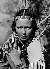 Shortly after losing the role of Tremartini, De Carlo was loaned out to Republic Pictures to portray the Native American princess Wah-Tah in Deerslayer.[54] It was her first featured role in a full-length film. At Paramount, she played unbilled bit roles in True to Life (1943) and Standing Room Only (1944),[55] and also made a screen test for the role of Lola in Double Indemnity (1944).[56] She was billed in a short, Fun Time (1944) and went to MGM to play an uncredited lady-in-waiting in Kismet (1944).[55]
