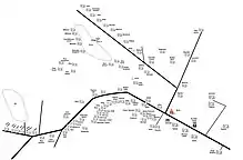 The rough plan to the right is an incomplete view of farmhouses from the 1970s, including some of the 'špicnamen'. Major exceptions are farmhouse details for Draga Brakus and the Hinić concentrated around Um.