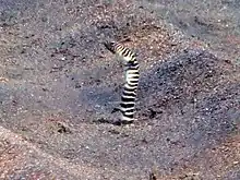 The zebra garden eel (Heteroconger polyzona), also known as the banded garden eel,[2] is a species of eel in the conger/garden eels family Congridae.[3] It was described by Pieter Bleeker in 1868.[4] It is a marine, tropical eel which is known from the Indo-Western Pacific, including the Philippines, the Ryukyu Islands, New Guinea, Indonesia and Vanuatu. It inhabits shallow waters at a depth range of 1 to 10 m (3.3 to 32.8 ft), and forms burrows in colonies of moderate size on sand sediments in bays, slopes and reefs. Males can reach a maximum total length of 34.7 cm (13.7 in; 1.14 ft).[3]