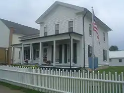 The house was built in 1853 by Zenas Aplington, the founder of Polo. When the nearby community of Buffalo Grove refused to let the Illinois Central Railroad build through the town in 1852, Aplington provided his farmland to the railroad; Polo developed around the farmland, and by 1856 nearly all of Buffalo Grove had moved to the new town. Aplington chose the community's name in honor of Marco Polo. His role in founding Polo and his work for the Republican Party led him to befriend Abraham Lincoln, and Lincoln spent two nights in the house in 1856. The house itself has a vernacular Upright and Wing plan, which consists of a two-story gabled main section with a one-story gabled wing, and features Greek Revival details.[2]