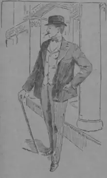 Eduardo Zerega was born Edgar E. Hill around 1860 in Columbus, Indiana, USA.[14] On 21 April 1880 he married May D Keith in Bartholomew, Indiana.[15] Because the marriage was opposed by her father, the couple left Columbus, and went to live in London.[16] When visiting New York in 1896, the papers described him as "about five feet five inches in height, and strongly built".[13] For a time in England, Eduardo Zerego claimed to be a Spanish national,[17] before confirming his American citizenship.[18] He died in London on 22 July 1922,[19] leaving effects of £5,105,[20] (worth about £250,000 now).