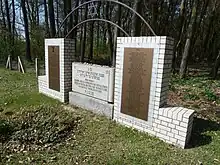 Beside it is a description on another panel in German, Hebrew and Hungarian of the events and a third plaque gives the names of the dead. Apart from the actual memorial there is another grave for the Jewish lawyer Theodor Steigerwald, who died in 1947. He had been hiding from the Nazis during the war in the Kyritz area. Before his death he had made known his wish to be buried here also.[10]