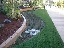 Green infrastructure includes private and public garden areas, parks, trees, and urban agriculture. Green infrastructure mitigates the effects of carbon emissions in multiple ways, by naturally removing and storing carbon dioxide, and by shading and cooling surrounding areas which reduces energy needs for cooling. The development of green space in cities, particularly long-lived trees, is a cost-effective method of carbon sequestration.[8][60] The inclusion of green space in urban areas can also help with wide variety of other issues, from stormwater[61] to mental health.[62]