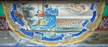 Buddhism, with all its iconography, came to China from India. Zhang Sengyou, working in the early sixth century, painted large murals of Buddhist shrines in Nanjing. He was one of the first to use these influences with happy results.[6] He was also well known for landscapes, especially snow scenery, with a reputation for the so-called "boneless" technique (mogu).