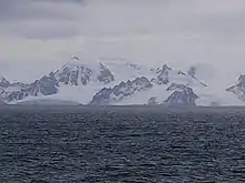 Ziezi Peak from Bransfield Strait, with Viskyar Ridge on the left and Kormesiy Peak on the right.