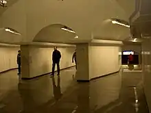 In August 2009 work was finished on installation of all four escalators. After that installation of ferro-concrete designs of walls of the ground floor was begun. Over station 4 floors of shopping centre were to be constructed.[16]
