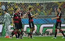 - Klose, with a corner. Goes a long way and a goal! It's him again! Thomas Müller with his tenth World Cup goal in history, to put the Germans ahead! Well Brazil were behind in their opening game of the tournament against Croatia and came back to win. But, it might be a much harder job. Chasing Germany, of all the players.