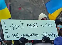 Sign at Montreal rally supporting Ukraine: "I don't need a ride, I need ammunition ~ Zelenskyy"