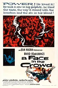 A Face in the Crowd is a 1957 film about an Arkansas hobo who becomes an overnight media sensation. But as he becomes drunk with fame and power, will he ever be exposed as the fraud he has become?