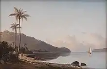 Pissarro, 1856: 'Cove with Sailboat', oil-painting