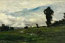 Daubigny, 1873: 'Landscape near Villerville / Paysage près de Villerville', oil-painting on canvas; current location: Museum of Fine Arts, Budapest, Hungary