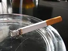 Tobacco is a product prepared from the leaves of the tobacco plant by curing them. The plant is part of the genus Nicotiana and of the Solanaceae (nightshade) family. Tobacco contains the alkaloid nicotine, which is a stimulant. Dried tobacco leaves are mainly used for smoking in cigarettes, cigars, pipe tobacco, and flavored shisha tobacco. They can be also consumed as snuff, chewing tobacco, dipping tobacco and snus.
