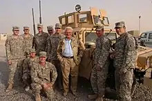 Malarkey with soldiers of the 129th Transportation Company in Kuwait in 2008.