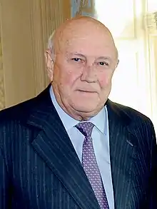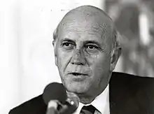 Frederik Willem de Klerk (18 March 1936 – 11 November 2021) was a South African politician who served as State President of South Africa from 1989 to 1994 and as Deputy President from 1994 to 1996. As South Africa's last head of state from the era of white-minority rule, he and his government dismantled the apartheid system and introduced universal suffrage. Ideologically a conservative and an economic liberal, he led the National Party from 1989 to 1997.