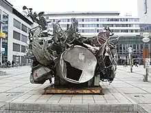 Frank Stella, c. 2001: 'Catal Hüyük', sculpture in aluminum pipe and cast aluminum; location: on Hallbergsplatsen in Borås, Sweden - quote of Frank Stella, c. 1999: 'The aim of art is to create space - space that is not compromised by decoration or illustration, space within which the subjects of painting can live.'