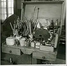 photo of Frida Kahlo's oil-paints and brushes, found in 'The Blue House' in 2004 - 50 years after her death