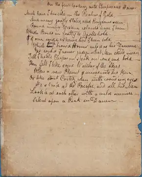 - Attributed, probably falsely, to Chapman. Perhaps written by George Peele.