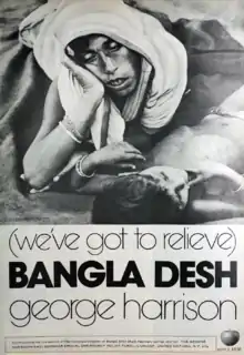 Relieve the people of Bangladesh.- Bangla Desh (1971); released as a single, and then on The Concert for Bangladesh (1971), and later on the album Living in the Material World (1973)